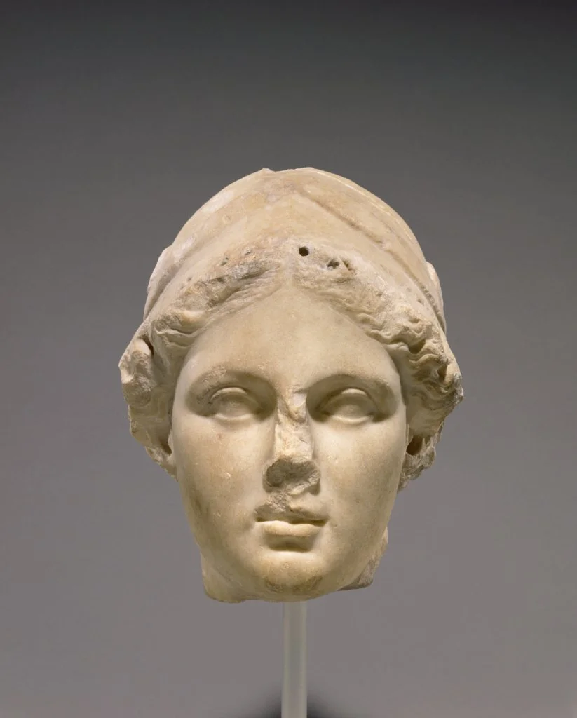 The Getty Villa houses a fascinating antique collection housed in a remake of a Greek Villa right on the Pacific Coast. The architecture and the ambiance are well worth a visit, but the collection of antiquities is remarkable and my favorites — and one of the best preserved — is this head of Minerva.. Her nose is broken, her body lost, but she’s still there — Roman goddess of wisdom, war, and art.